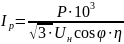 cosφ - коэффициент мощности двигателя (берется по таблице 1);