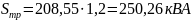 Iрасч = 222,4 ≤ 250 = Iдл.доп.