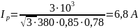 Для двигателя 3 мощностью P=3 кВт, коэффициент мощности которого равен 0,85 и КПД двигателя 0,78 принимаю кабель типа АВВГ.