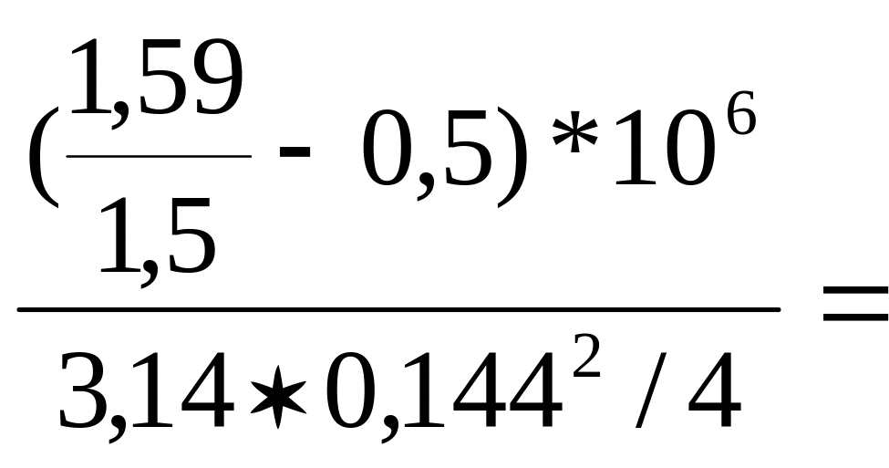 где Рстр – страгивающая нагрузка для обсадных труб из стали группы прочности L, равна 1,59 МН, G – усилие затяжки при обвязке обсадной колонны (берётся по данным бурового журнала), равное 0,5 МН; к – запас прочности, который принимаем равным 1,5. Тогда допустимое устьевое давление: