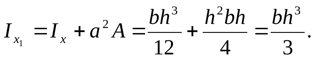 Выведем формулу для вычисления момента инерции прямоугольника относительно оси х1, проходящей через основание: