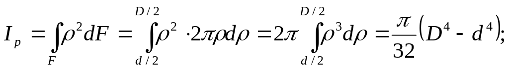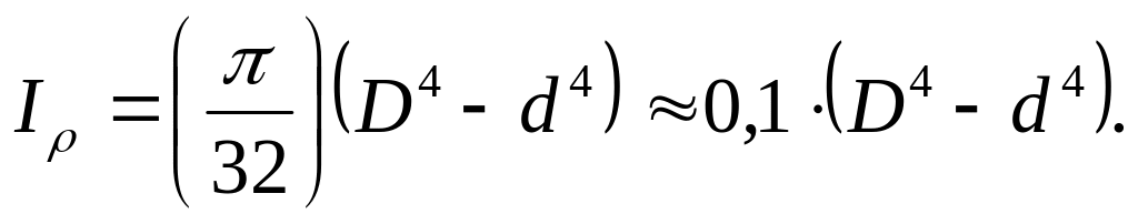Полярный момент инерции кольцевого сечения можно вычислить как разность полярных моментов инерции большого и малого кругов.