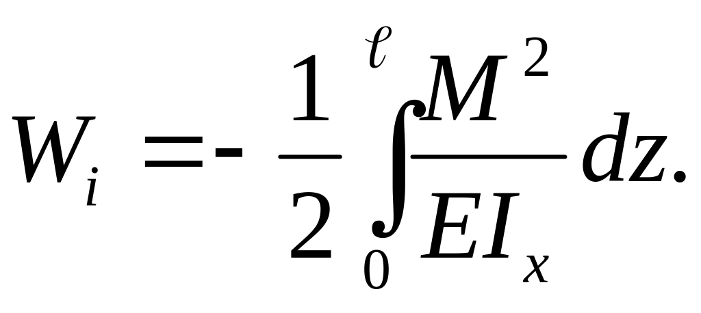 Потенциальную энергию изгиба, равную работе внутренних сил, взятую с обратным знаком, можно определить по формуле