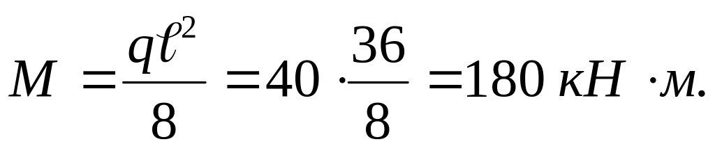 Решение. Для этого случая наибольший изгибающий момент имеет место в среднем cечении балки: