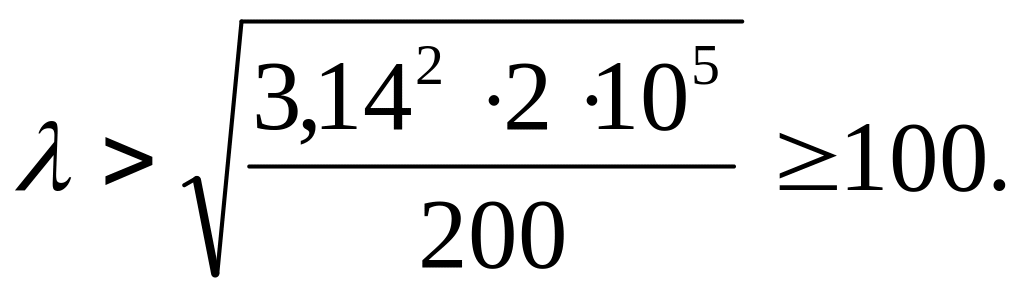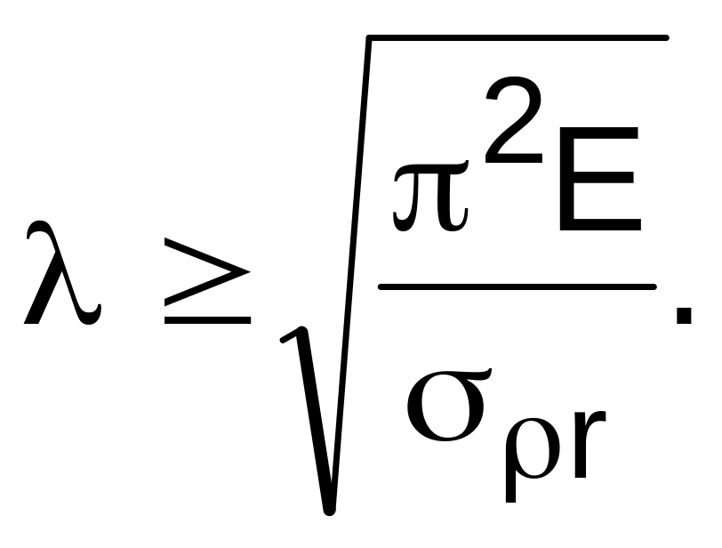 Записывая формулу (9.9) относительно гибкости, получаем условие применимости формулы Эйлера в виде