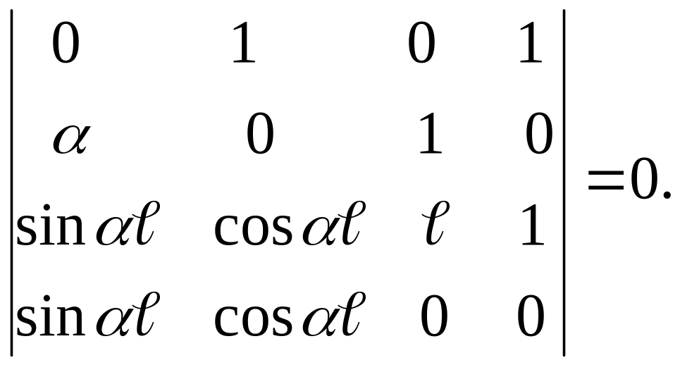 Из математики известно, что система однородных уравнений (т.е. без свободных членов) имеет ненулевое решение только в том случае, когда ее определитель равен нулю: