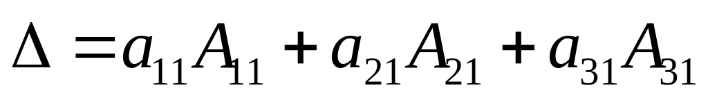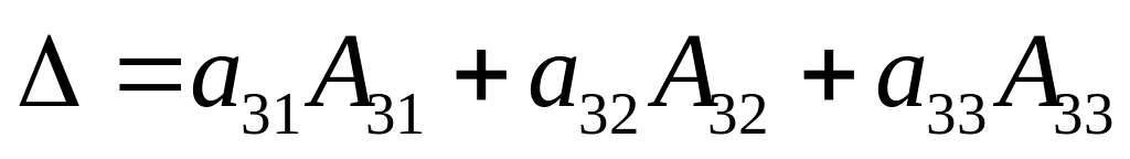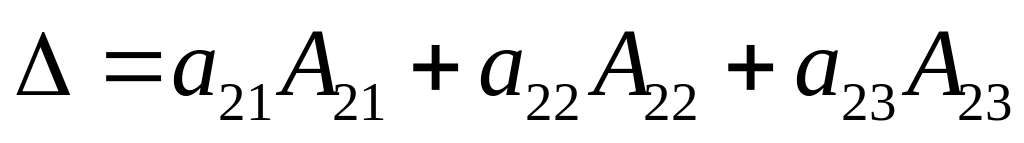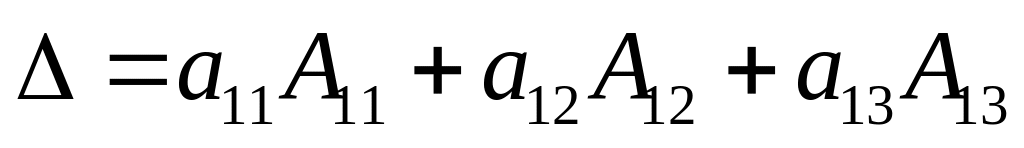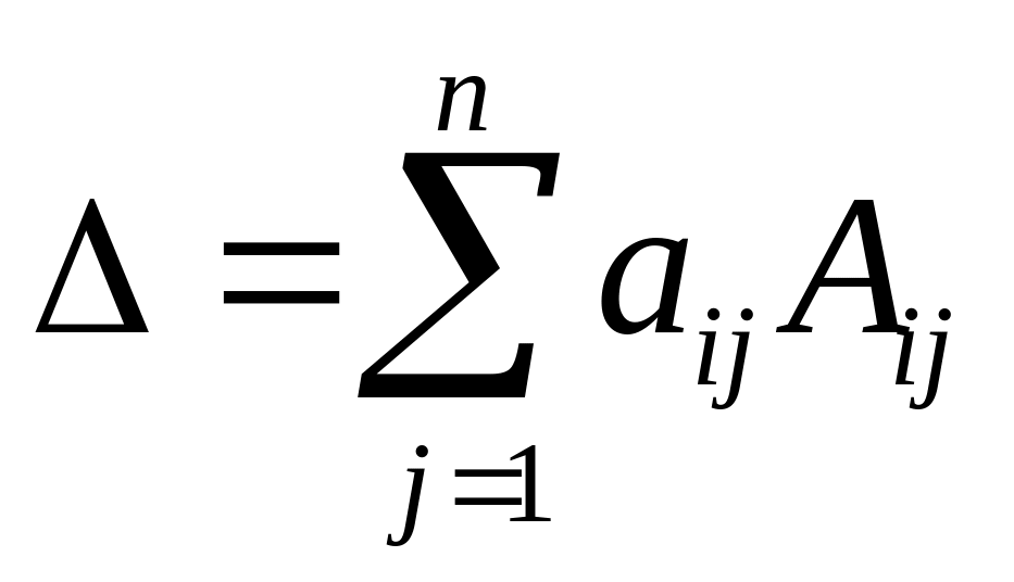 Универсальный способ вычисления определителя квадратных матриц любого порядка заключается в следующем: определитель квадратной матрицы А равен сумме произведений элементов любой строки (или любого столбца) на их алгебраические дополнения: