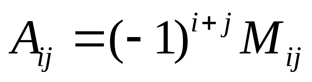 Алгебраическое дополнение Аij равен минору, Мij, если сумма (i+j) есть четное число и Аij=-Mij, если сумма (i+j) есть четное число, то есть