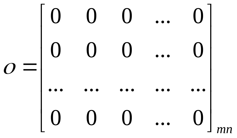 Матрица, все элементы которой равны нулю, называется нулевой и обозначается