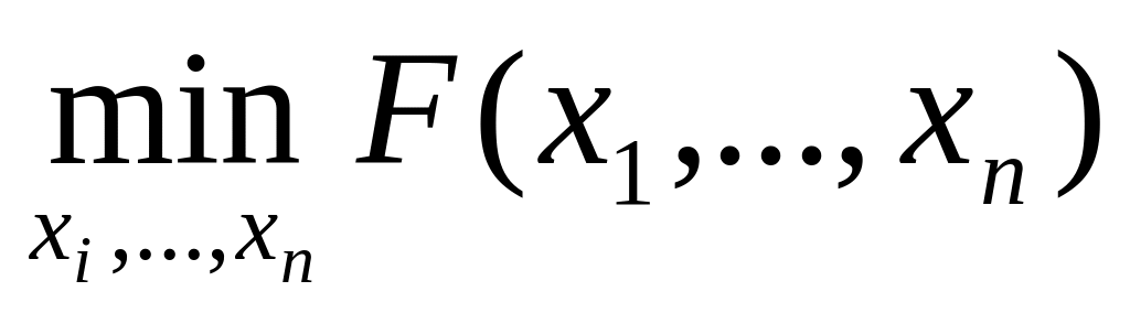 Задача оптимизации заключается в нахождении оптимума (чаще минимум) целевой функции и оптимальных значений переменных.