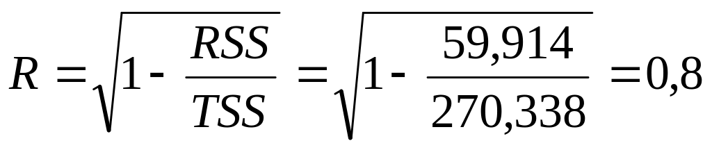 Уравнение значимо с надежностью 0,95.