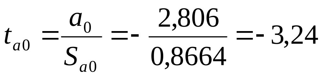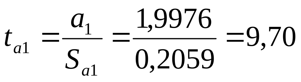 Подставив числовые значения, значения коэффициентов а0 и а1, их средние квадратичные отклонения и значение для t имеем: