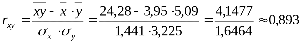 Коэффициент корреляции принимает значения от – 1 до +1, причем если rxy > 0, то корреляция прямая, если rxy < 0, то корреляция обратная, а если rxy = 0, то связь отсутствует полностью.