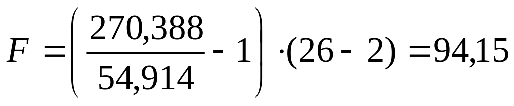 Имеем F > Fкр (т.е. 94,15 > 4,260), поэтому уравнение значимо с надежностью 0,95.