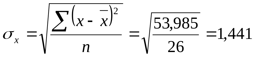 Таблица для расчета средней величины и дисперсии.