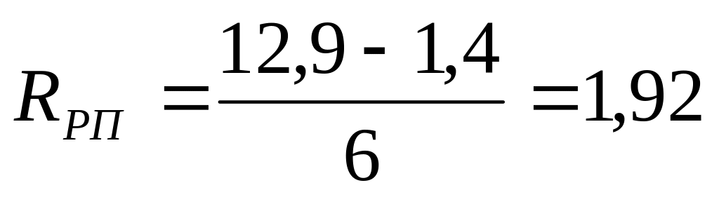 Определим число интервалов по формуле Стерджесса: k = 1 + 3,322lgN, где N – число показателей.