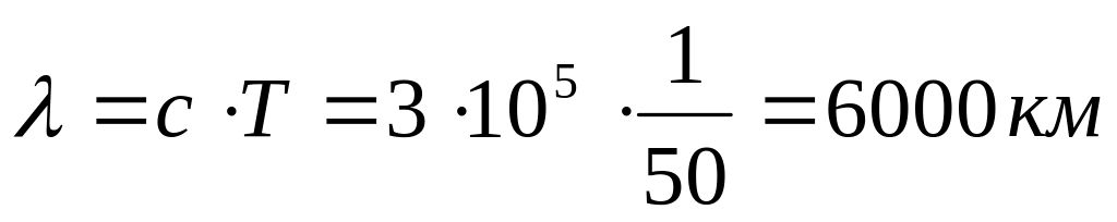 Довжина хвилі коливань промислової частоти 50 Гц становить