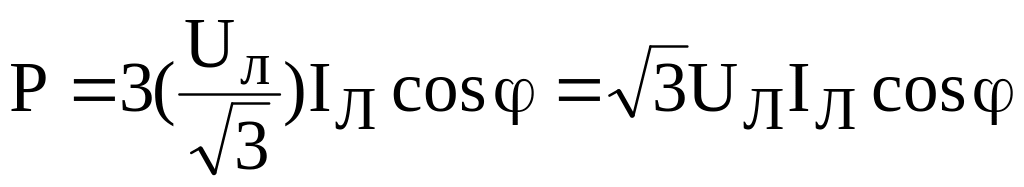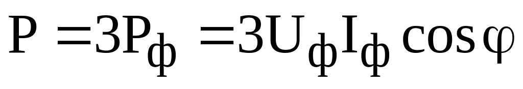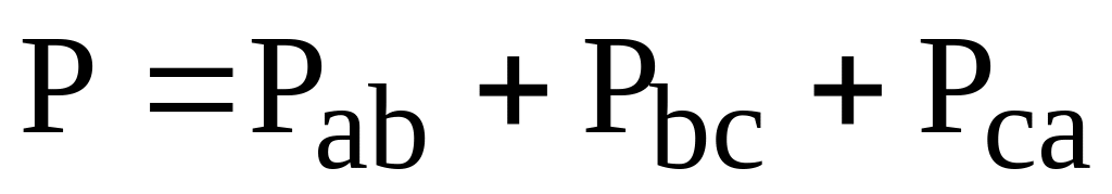 Розглянемо трифазне коло як сукупність трьох однофазних кіл. З урахуванням цього активна потужність трифазного кола становить