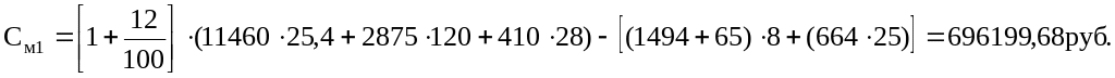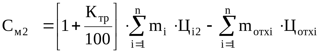 Затраты на сырье и материалы за вычетом возвратных отходов для проектируемого – 1 и базового – 2 вариантов рассчитываются по формулам: