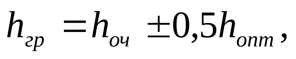 2) Верхню і нижню межі оптимальної зони hгр1 та hгр2 визначаємо з рис. 5.5 з врахуванням її розмірів hопт: