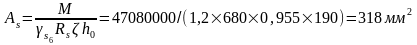 Вычисляем требуемую площадь сечения растянутой арматуры по формуле: