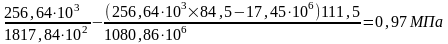 bp=(257,84×103)/(1817,84×102)-(257,84×103×78,5-17,45×106)×111,5/(1080,86×106)=0,97МПа