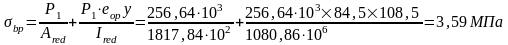 Так как при действии усилия обжатия P1 в стадии изготовления минимальное напряжение в бетоне (в верхней зоне) равно: