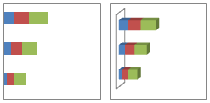Горизонтальные цилиндр, пирамида и конус Для диаграмм этих типов доступны те же виды представлений (с группировкой, с накоплением, нормированная с накоплением), что и для диаграмм с прямоугольниками. Они позволяют выводить и сравнивать данные аналогичным образом. Единственное различие заключается в том, что эти типы диаграмм вместо горизонтальных прямоугольников содержат цилиндрические, конические и пирамидальные фигуры.