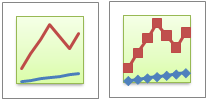 График и график с маркерами С помощью графиков с маркерами, отмечающими отдельные значения данных, или без маркеров удобно показывать динамику изменения данных с течением времени или по упорядоченным категориям, особенно когда точек данных много и порядок их представления существенен. Если категорий данных много или значения являются приблизительными, используйте график без маркеров.