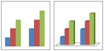 Гистограмма с группировкой и объемная гистограмма с группировкой Гистограммы с группировкой сравнивают значения по категориям и выводят их в виде плоских вертикальных прямоугольников. На объемной гистограмме с группировкой данные отображаются в трехмерном виде. Третья ось значений (ось глубины) не используется.