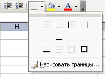 Можно применять комбинации границ, используя кнопку "Границы" на панели инструментов "Форматирование". После щелчка на маленькой стрелке рядом с этой кнопкой Excel выведет палитру границ, в которой можно выбирать тип границы.