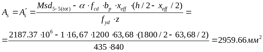 Т.к. условие соблюдается, то нейтральная линия проходит в полке и сечение рассматриваем как прямоугольное с размерами: b=bp=1200мм, h=lp=1800мм.