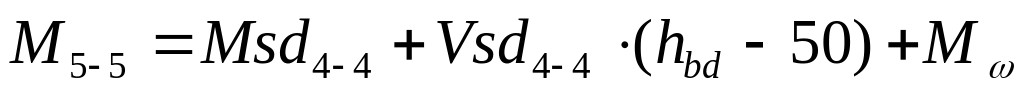 Нормальные силы и изгибающие моменты определяют от комбинации усилий, действующих в колонне на уровне верха стакана (Msd4-4, Nsd4-4, Vsd4-4).