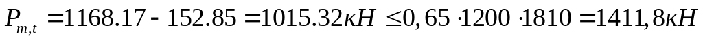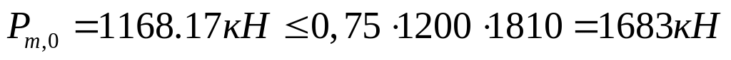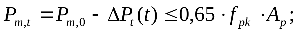 Среднее значение усилия предварительного обжатия Рm.t в момент времени t>t0 (с учетом всех потерь) при натяжении арматуры на упоры не должно быть большим, чем это установлено условиями: