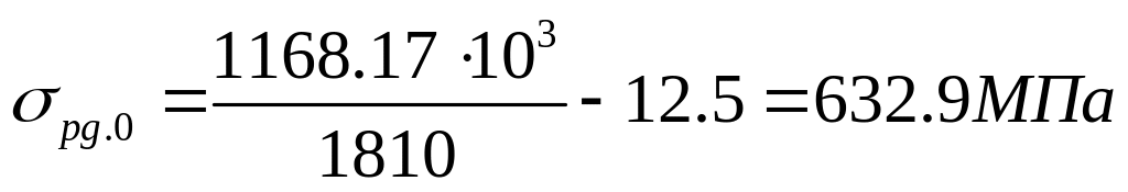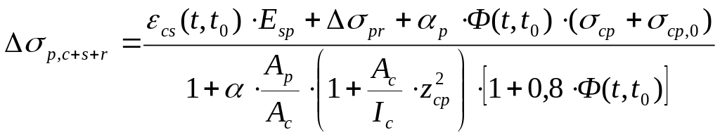 – изменение напряжений в напрягаемой арматуре в расчетном сечении, вызванные релаксацией арматурной стали, для вычисления которых сначала определяем – напряжения в арматуре, вызванные натяжением (с учетом первых потерь в t=t0) и от действия практически постоянной комбинации нагрузок.