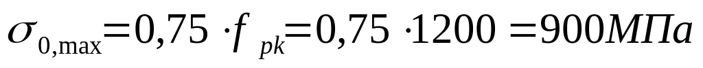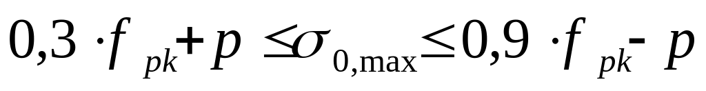 Усилие предварительного обжатия Рm,о, действующее непосредственно после передачи усилия предварительного обжатия на конструкцию должно быть не более: