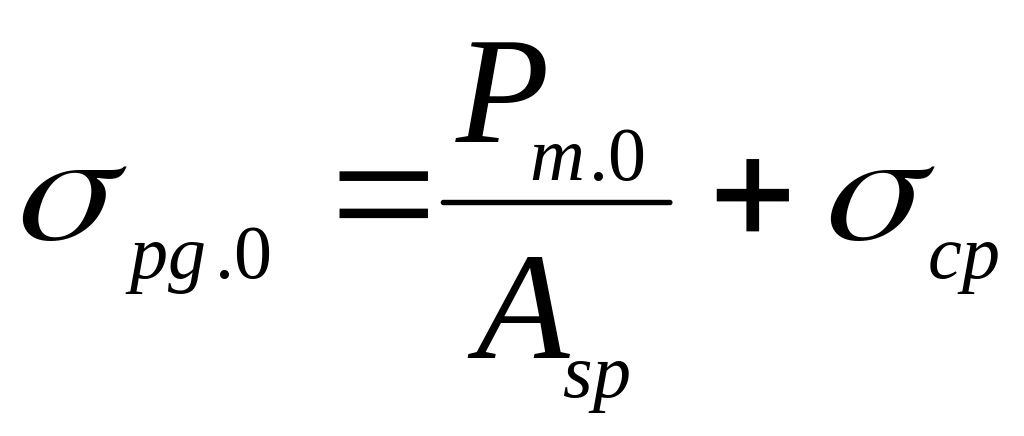 – начальное напряжение в бетоне на уровне центра тяжести напрягаемой арматуры от действия усилия предварительного обжатия;