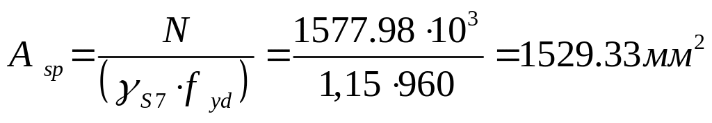 Арматура класса S1200: fpk=1200 МПа; fpd=960МПа; Eсp=1,9×105 МПа.