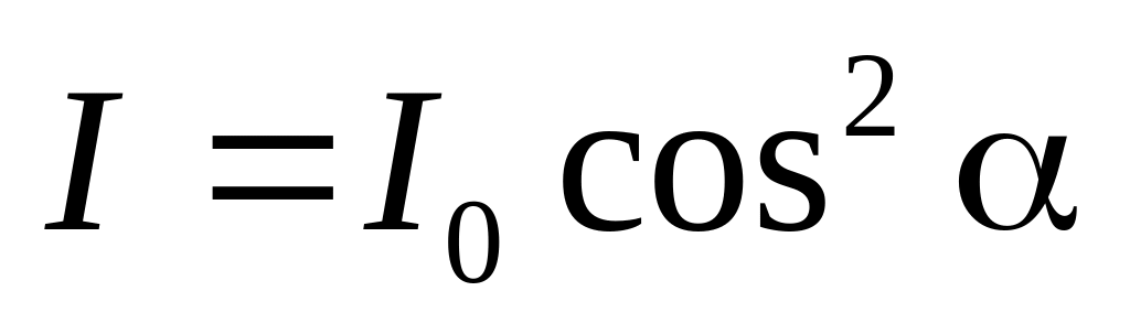 де I0 – інтенсивність поляризованого світла, що падає на пластинку 2, I - інтенсивність поляризованого світла, яке пройшло через пластинку 2. Таким чином, повертання поляризатора навколо поляризованого променя приводить до зміни інтенсивності світла, що проходить через цей поляризатор.