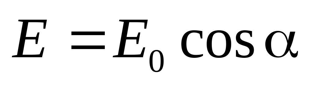 Пластинка 1, яка поляризує світло, називається поляризатором. Пластинка 2, яка виявляє ступінь поляризації світла, називається аналізатором. Якщо ж оптичні осі пластинок 1 і 2 будуть утворювати кут , відмінний від 90о, то промінь буде проходити через пластинку 2 з частковою втратою амплітуди електричних коливань. Для амплітуди Е0 електричних коливань падаючого на пластинку 2 поляризованого світла та амплітуди Е електричних коливань, що пройшли через пластинку 2 (рис.2), отримаємо