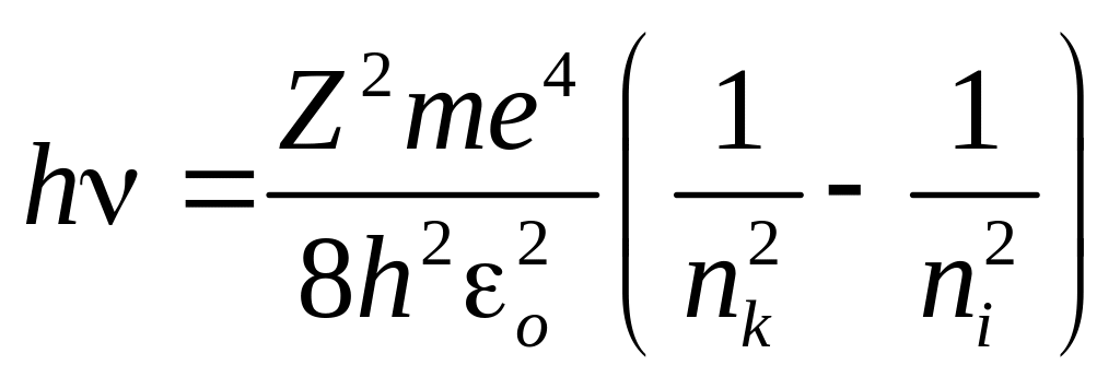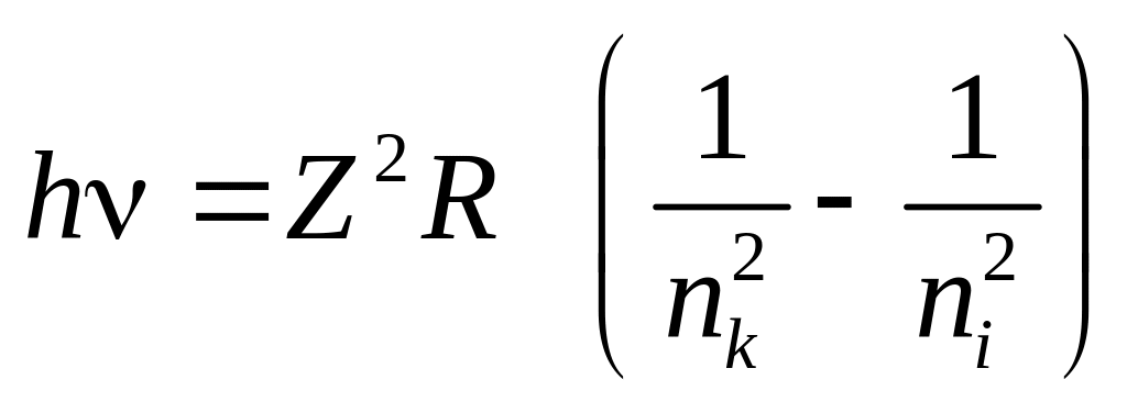 Користуючись правилом частот Бора (1), визначимо частоту світлової хвилі, що випромінюється атомом при переході з вищого рівня (n = ni) на нижчий (n = nk):