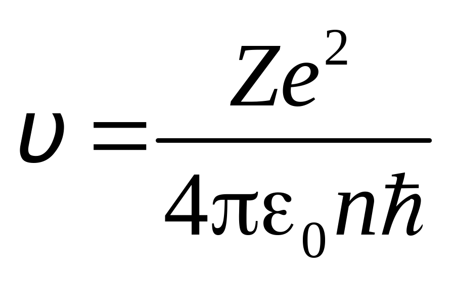 де Ze – заряд ядра, е – заряд електрона; 0 – діелектрична стала. З (2) і (3) знайдемо швидкість електрона на стаціонарній орбіті: