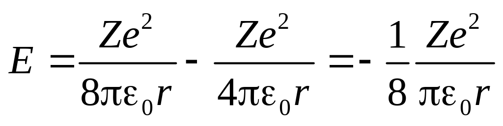 Тоді повна енергія електрона у водневоподібному атомі складається з його кінетичної енергії (Ze2/(80r)) та потенціальної енергії в електростатичному полі ядра (–Ze2/(40r)):