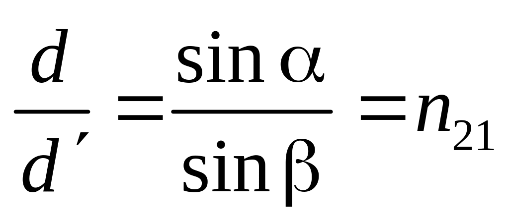 Вимірявши за допомогою мікроскопа уявну товщину пластинки d’ та за допомогою мікрометра дійсну товщину d, можна обчислити відносний показник заломлення пластинки. А саме: з ВДЕ: ДЕ = ВЕtg = dtg ; з ОДЕ: ДЕ = ОЕtg = dtg . Врахувавши, що при малих кутах та sin tg , sin tg , одержимо