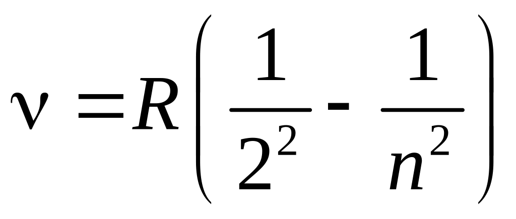 Для видимої частини спектру випромінювання водню Бальмер виявив серію ліній (серію Бальмера), частота яких виражається емпіричною формулою: