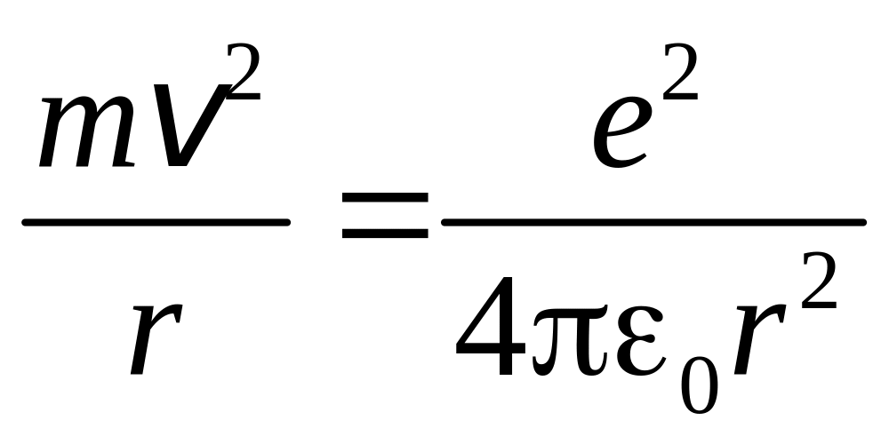 В атомі водню навколо ядра (протона) рухається один електрон. Враховуючи суттєво більшу масу протона відносно маси електрона (в 1840 разів), можна допустити, що ядро є нерухомим, а орбіти електрона – кругові. На електрон, що обертається навколо протона, діє дві сили: доцентрова і кулонівська, які себе взаємно зрівноважують. Тобто: