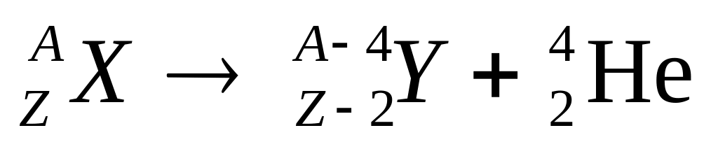 ) з кінетичною енергією 0,01-8 МеВ та швидкістю ~160000 км/с. Іонізуюча здатність -частинок – 300 пар іонів на 1 см. Тому їх проникна здатність більша, ніж у -частинок: у біологічній тканині становить ~6 cм. Рівняння -розпаду має такий вигляд: