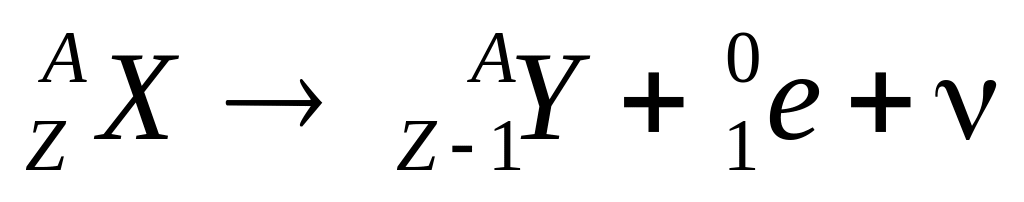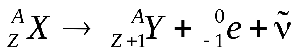 ) з високою кінетичною енергією (2-9 МеВ) та швидкістю 14000-20000 км/с. Проникна здатність мала: в біологічній тканині пробіг електрона до повної зупинки становить ~0,12 мм. Рівняння для -розпаду має такий вигляд:
