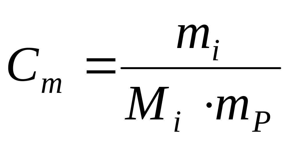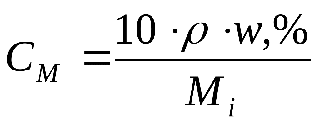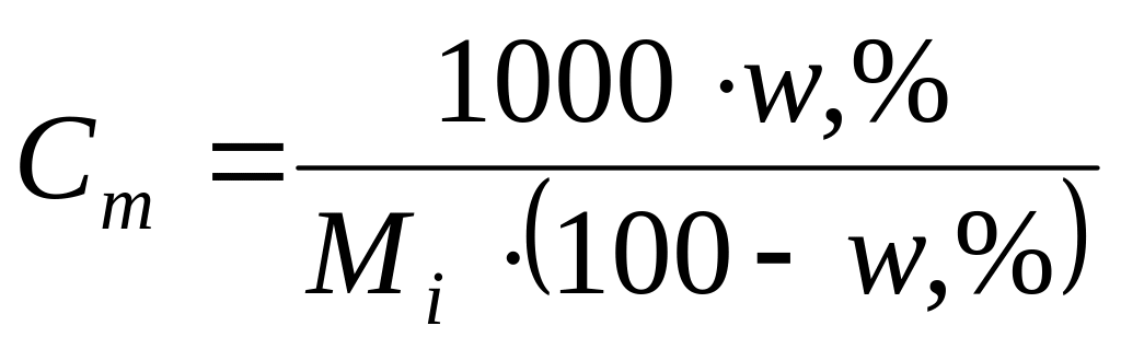 де mi – маса розчиненої речовини, г; Мi – молярна маса розчиненої речовини, г/моль; Vi - об’єму розчину, мл; 1000 – коефіцієнт переходу від мілілітрів до літрів.