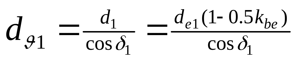 Розрахунки зводяться до еквівалентних циліндричних коліс. Розрахункове навантаження приймається рівним силі, віднесеній до середнього по ширині вінця ділильного кола конічних коліс